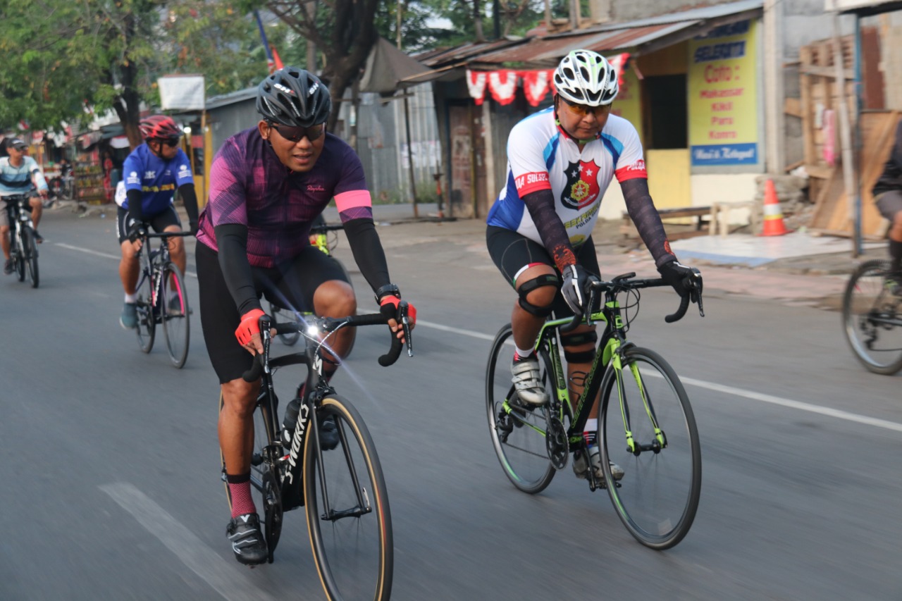 Sulsel – Wakapolda Sulsel Brigjen Pol Risyapudin Nursin melaksanakan Gowes Kamtibmas pada hari Sabtu pada pukul 06.00 Wita (11/8/2018).