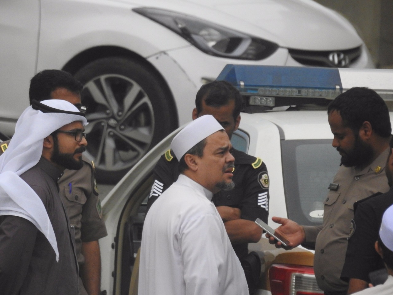 Kendati demikian, seruan tersebut kini justru berbuntut panjang dan harus berurusan dengan aparat keamanan Saudi Arabia. Viral beberapa foto yang didapat pihak redaksi, pada Senin 5 November 2018 tampak Habib Rizieq seperti diamankan oleh aparat keamanan Saudi Arabia.