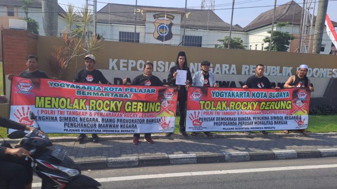 Yogyakarta – Usai melakukan aksi penolakan kehadiran Rocky Gerung di Jombang dan Surabaya, Senin 01 Agustus 2023, kemarin ormas Pejuang Nusantara Indonesia Bersatu, hari ini kembali mengadakan acara giat menolak Rocky Gerung yang dijadwalkan akan hadir di kota Yogyakarta pada Rabu (2/8).