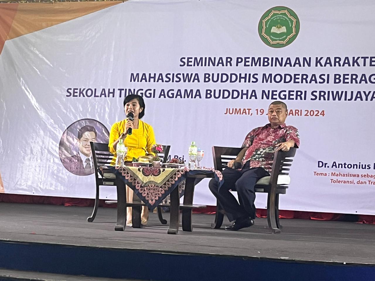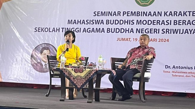 Tangerang Selatan, Banten – Staf Khusus Ketua Dewan Pengarah (Ketua DP) Badan Pembinaan Ideologi Pancasila (BPIP), Antonius Benny Susetyo, menyatakan bahwa mahasiswa harus menjadi insan-insan perubahan Indonesia menuju yang lebih baik dari sebelumnya. Hal itu dia sampaikan dalam Seminar Pembinaan Karakter Mahasiswa Buddhis Moderasi Beragama Ke-1 Sekolah Tinggi Agama Buddha Negeri Sriwijaya Tangerang Banten, pada hari Jumat (19/01/2024).