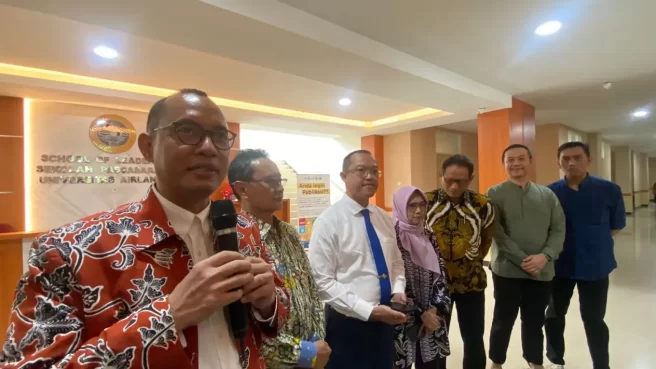 Direktur Sekolah Pascasarjana Unair Prof Badri Munir Sukoco menegaskan aksi yang berlangsung di halaman depan Gedung Pascasarjana Unair pada Senin (5/2/2024) sekitar pukul 11.00 WIB itu, bukan pernyataan resmi dari civitas academica Unair maupun pascasarjana Unair.