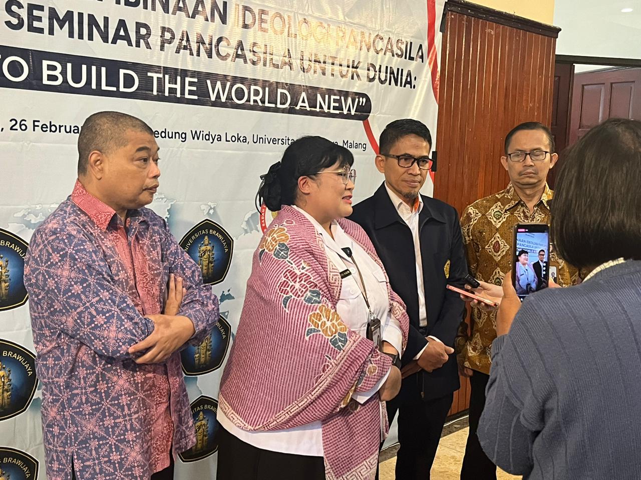 Malang, Jawa Timur – Badan Pembinaan Ideologi Pancasila (BPIP), lewat Direktorat Sosialisasi dan Komunikasi, bersama dengan Universitas Brawijaya, menyelenggarakan Seminar mengenai Sosialisasi Pembinaan Ideologi Pancasila melalui Seminar Pancasila untuk Dunia: “To Build The World A New”, pada hari Senin (26/02/2024), di Gedung Widyaloka, Kompleks Universitas Brawijaya.