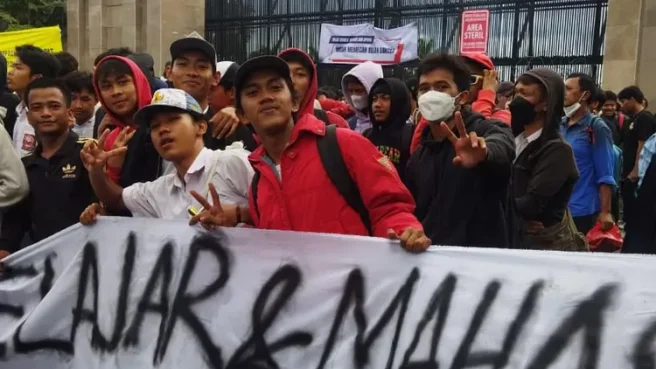 Jakarta – Ribuan pelajar dan mahasiswa gabungan dari blok politik pelajar merdeka dan aliansi mahasiswa se-Jabodetabek kembali menggelar aksi unjuk rasa penolakan hak angket dan tolak pemakzulan Presiden Jokowi di depan Gedung DPR RI, Jakarta Pusat, Jumat (8/3).