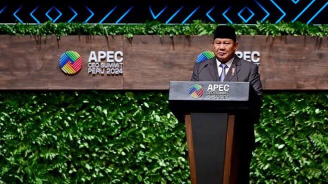 Peru – Presiden Republik Indonesia, Prabowo Subianto, menyampaikan pidato utama dalam acara APEC CEO Summit di National Grand Theater Peru, pada Kamis, 14 November 2024. Dalam pidatonya, Presiden Prabowo menekankan pentingnya peran sektor bisnis dan wirausahawan dalam mendorong pertumbuhan ekonomi serta mewujudkan perdamaian dan kesejahteraan global.