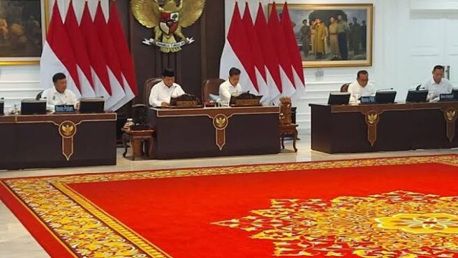 Jakarta – Presiden Prabowo Subianto memimpin rapat terbatas bersama sejumlah menteri Kabinet Merah Putih di Ruang Sidang Kabinet, Kantor Presiden Jakarta, pada Senin, 16 Desember 2024. Rapat tersebut membahas persiapan menjelang perayaan Natal 2024 dan Tahun Baru 2025.