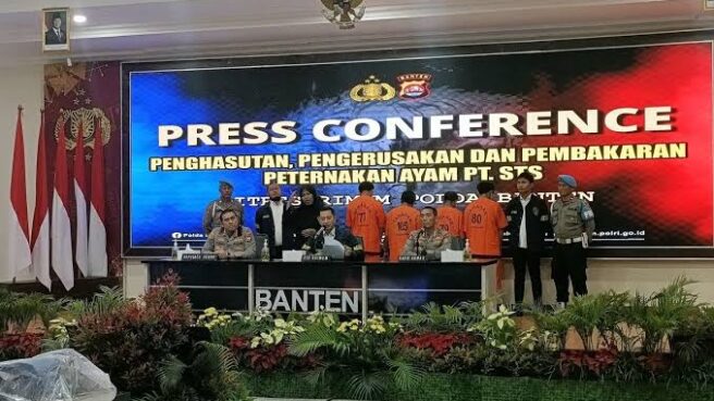 Polda Banten menangkap 11 tersangka pembakaran ternak kandang ayam yang terjadi pada 24 November 2024. Penangkapan dilakukan pada Jumat (7/2) pekan lalu untuk tersangka CS, M, DB, FR, P, US, S, dan SM.