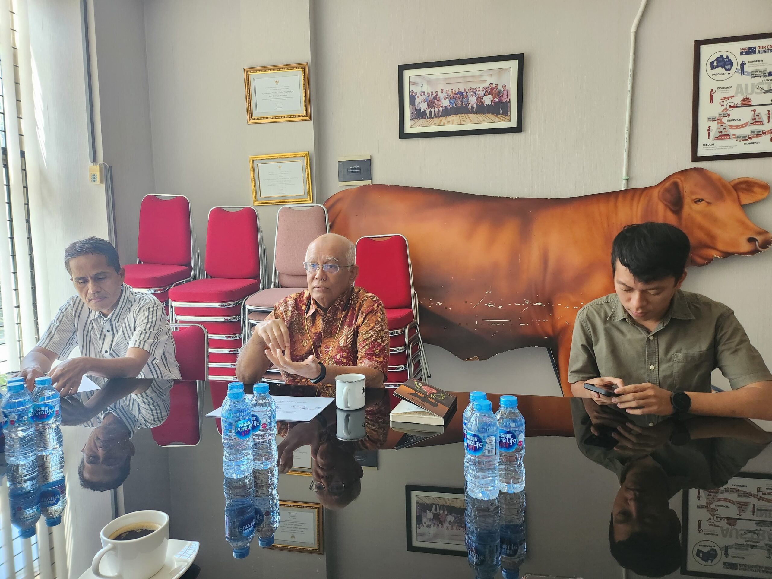Dalam pertemuan yang berlangsung hangat dan konstruktif, Joni Liano menyampaikan sejumlah masukan strategis terkait kondisi aktual di lapangan, termasuk hambatan yang dihadapi oleh pelaku usaha dalam menjamin pasokan sapi kurban tahun ini. Ia menyoroti terbatasnya mobilitas ternak akibat aturan karantina wilayah, belum meratanya vaksinasi hewan, serta tingginya biaya distribusi yang menjadi beban bagi peternak dan konsumen.