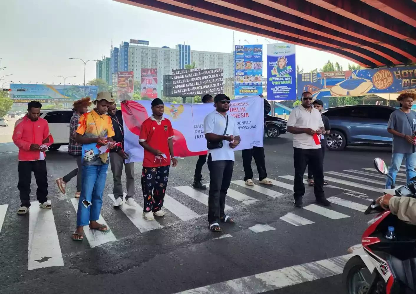 Bekasi – Mahasiswa dan pemuda asal Papua merayakan Hari Ulang Tahun (HUT) ke-80 Kemerdekaan Republik Indonesia dengan cara unik, yakni membagikan bendera Merah Putih berukuran kecil kepada para pengendara di salah satu persimpangan lampu merah di Kota Bekasi, Minggu (17/8/2025).