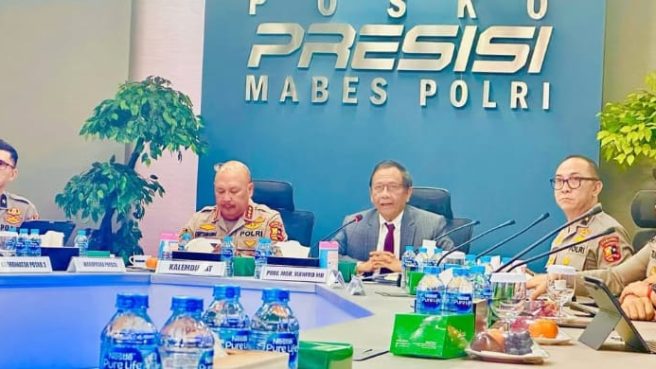 JAKARTA – Di depan lebih dari 750 anggota dari seluruh Indonesia, eks Menko Polhukam, Mahfud MD, mengajak Polri tetap tegar menjadi bhayangkara negara. Hal itu disampaikan dalam Forum Belajar Bersama PJU Posko Presisi yang diikuti pejabat Polri dari pusat sampai provinsi dan kabupaten/kota.