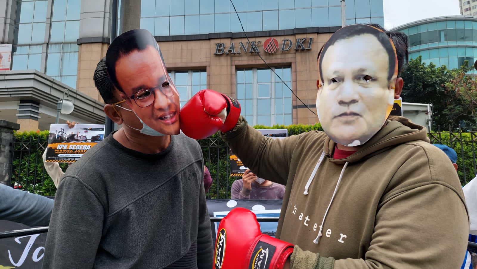 Aksi Teatrikal Pertandingan Tinju KPK vs Koruptor Formula E, Aktivis : KPK Harus Menang!